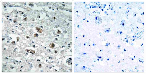 - Immunohistochemistry analysis of paraffin-embedded human brain tissue, using GASP1 Antibody. The picture on the right is blocked with the synthesized peptide.