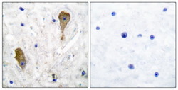 - Immunohistochemical analysis of paraffin-embedded human brain tissue using GAD67 antibody. The picture on the right is treated with the synthesized peptide.