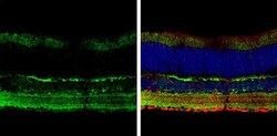 - Immunohistochemistry (Frozen) analysis of GAD67 was performed in frozen sectioned adult mouse retina tissue using GAD67 Polyclonal Antibody (Product # PA5-21397) at a dilution of 1:250 (Green). Red: beta Tubulin 3/ TUJ1, stained by beta Tubulin 3/ TUJ1 antibody diluted at 1:250. Blue: Fluoroshield with DAPI.