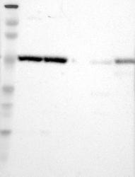 - Western blot analysis of antibody specificity using a routine panel composed of IgG/HSA-depleted human plasma and protein lysates from selected human tissues and cell lines.