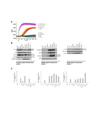 - Figure 1 Signal transduction in Jurkat T cells . Jurkat T cells were stimulated with different combinations of stimuli in order to elucidate the different signal transduction pathways. A ; Jurkat T cells were stimulated as indicated and intracellular Ca 2+ release was monitored over/in time. B ; Intracellular signal transduction routes were charted via phosphoanalysis using western blot. Jurkat T cells were stimulated for 15 min using different stimulations. Proximal (Lck, ZAP70, PKCtheta and the PKC substrate MARCKs), medial (MAPK phosphorylation) and distal (c-Jun and ATF2) signaling was monitored based on the phosphorylation status of the described proteins. C ; Nuclear translocation of the transcription factors NFAT, NFkB and c-Jun was evaluated 15 minutes after stimulation.