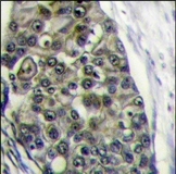 - Formalin-fixed and paraffin-embedded human breast carcinoma tissue reacted with LRP6 Antibody (C-term), which was peroxidase-conjugated to the secondary antibody, followed by DAB staining.