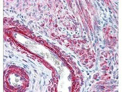 - Rocklands affinity purified anti-Monophosphorylated RLC Smooth and Non-Muscle Myosin pS19/20 antibody was used at 2.5 µg/ml to detect signal in a variety of tissues including multi-human, multi-brain and multi-cancer slides. This image shows strong staining of both vascular and myometrial smooth muscle cells of the uterus. Tissue was formalin-fixed and paraffin embedded. The image shows localization of the antibody as the precipitated red signal, with a hematoxylin purple nuclear counterstain. Personal Communication, Tina Roush, LifeSpanBiosciences, Seattle, WA.