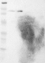 - Single band corresponding to the predicted size in kDa (+/-20%).