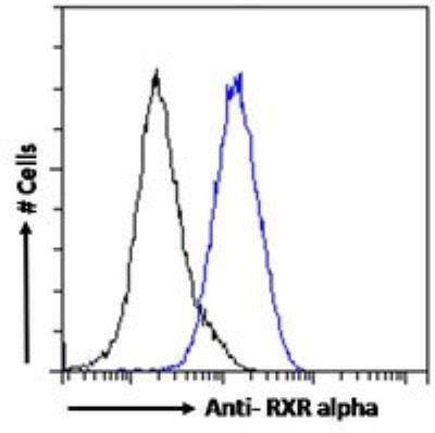 - Flow Cytometry: RXR alpha/NR2B1 Antibody [NB100-1466] - Flow cytometric analysis of paraformaldehyde fixed MCF7 cells (blue line), permeabilized with 0.5% Triton. Primary incubation 1hr (10 ug/mL) followed by Alexa Fluor 488 secondary antibody (1 ug/mL). IgG control: Unimmunized goat IgG (black line) followed by Alexa Fluor 488 secondary antibody.