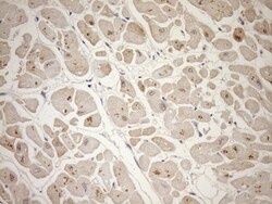 - Immunohistochemical staining of paraffin-embedded human adult heart tissue using anti-TCAP mouse monoclonal antibody. (Heat-induced epitope retrieval by Tris-EDTA, pH8.0, TA808352)(1:150)