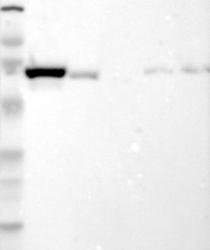 - Western blot analysis of antibody specificity using a routine panel composed of IgG/HSA-depleted human plasma and protein lysates from selected human tissues and cell lines.
