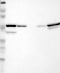 - Western blot analysis of antibody specificity using a routine panel composed of IgG/HSA-depleted human plasma and protein lysates from selected human tissues and cell lines.