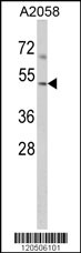 - Western blot analysis of ACTR3 Antibody (C-term) in A2058 cell lysates (35ug/lane). ACTR3 (arrow) was detected using the purified Pab.
