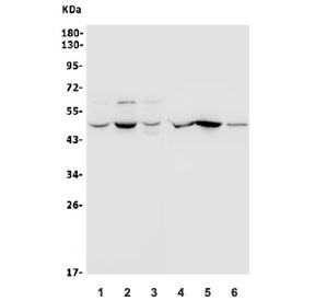 - Western blot testing of human 1) A549, 2) PC-3, 3) U-2 OS, 4) rat kidney, 5) rat spleen and 6) mouse spleen lysate with ACTR3 antibody. Predicted molecular weight ~47 kDa.