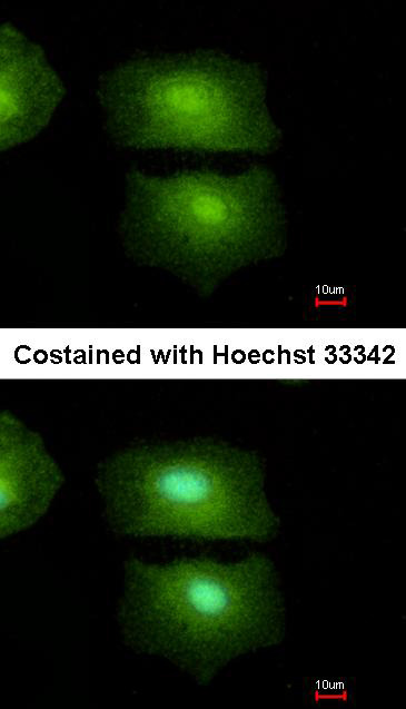 - Immunofluorescence analysis of methanol-fixed A549, using IL16 antibody at 1: 500 dilution.