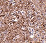 - Immunohistochemistry of IL16 in mouse brain tissue with IL16 polyclonal antibody (Cat # PAB16687) at 2.5 ug/mL .