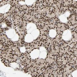 - Immunohistochemical staining of human parathyroid gland shows strong nuclear positivity in glandular cells.