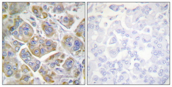 - Immunohistochemistry analysis of paraffin-embedded human breast carcinoma tissue using ITGB4 (Ab-1510) antibody. The picture on the right is treated with the synthesized peptide.