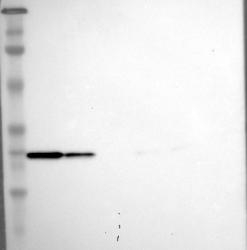 - Western blot analysis of antibody specificity using a routine panel composed of IgG/HSA-depleted human plasma and protein lysates from selected human tissues and cell lines.