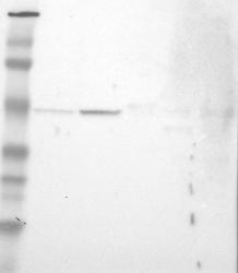 - Western blot analysis of antibody specificity using a routine panel composed of IgG/HSA-depleted human plasma and protein lysates from selected human tissues and cell lines.
