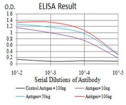 - ELISA: Notch-3 Antibody (3E2D9) [NBP2-52522] - Black line: Control Antigen (100 ng); Purple line: Antigen(10ng); Blue line: Antigen (50 ng); Red line: Antigen (100 ng)