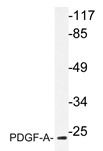 - Western blot analysis of PDGF-A antibody (Cat.-No.: AP20635PU-N) in extracts from Jurkat cells.
