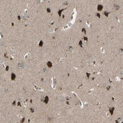 - Immunohistochemical staining of human cerebral cortex shows strong cytoplasmic positivity in neuronal cells.