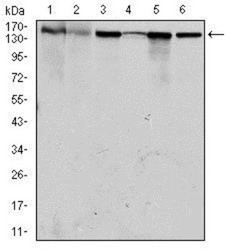 - Western Blot: MSH6 Antibody (3E1) [NBP2-37537] - Western blot analysis using MSH6 mouse mAb against HEK293 (1), HCT116 (2), A549 (3), A431 (4), MCF-7 (5) and HepG2 (6) cell lysate.