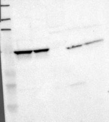 - Western blot analysis of antibody specificity using a routine panel composed of IgG/HSA-depleted human plasma and protein lysates from selected human tissues and cell lines.