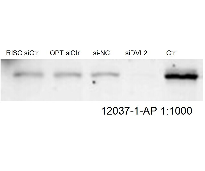 - WB result of DVL2 antibody (12037-1-AP, 1:1000) with siDVL2 transfected cells.
