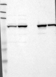 - Western blot analysis of antibody specificity using a routine panel composed of IgG/HSA-depleted human plasma and protein lysates from selected human tissues and cell lines.
