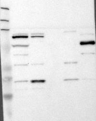 - Western blot analysis of antibody specificity using a routine panel composed of IgG/HSA-depleted human plasma and protein lysates from selected human tissues and cell lines.