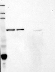 - Western blot analysis of antibody specificity using a routine panel composed of IgG/HSA-depleted human plasma and protein lysates from selected human tissues and cell lines.
