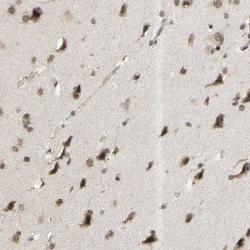 - Immunohistochemical staining of human cerebral cortex shows strong nuclear and cytoplasmic positivity in neuronal cells and glial cells.
