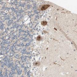 - Immunohistochemical staining of human cerebellum shows distinct nuclear and cytoplasmic positivity in purkinje cells.