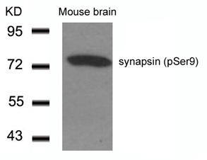 - Western blot analysis of extracts from Mouse Brain tissue using synapsin (Phospho-Ser9) Antibody (GTX50292).