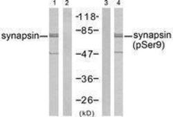 - Western blot analysis of extracts from Mouse Brain tissue using synapsin (Phospho-Ser9) Antibody GTX50292