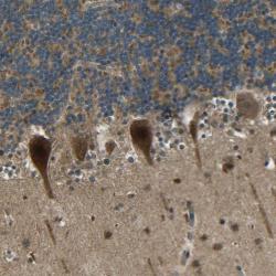 - Immunohistochemical staining of human cerebellum shows strong nuclear and cytoplasmic positivity in purkinje cells.