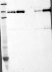 - Western blot analysis of antibody specificity using a routine panel composed of IgG/HSA-depleted human plasma and protein lysates from selected human tissues and cell lines.