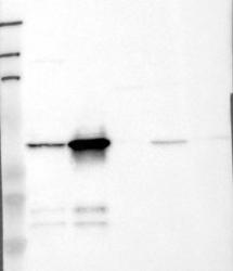 - Western blot analysis of antibody specificity using a routine panel composed of IgG/HSA-depleted human plasma and protein lysates from selected human tissues and cell lines.