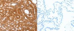 - Predicted cell location: Cytoplasm. Positive control: Human thyroid cancer tissue. Recommended dilution: 1/50-200 The image on the left is immunohistochemistry of paraffin-embedded Human thyroid cancer tissue using CNN3 antibody at dilution 1/25, on the right is treated with the fusion protein. (Original magnification: x 200)