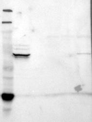 - Band of predicted size in kDa (+/-20%) with additional bands present.