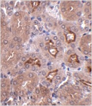 - Immunohistochemistry of OTUD5 in mouse kidney tissue with OTUD5 antibody at 2.5 μg/ml.