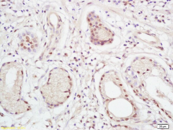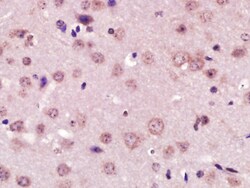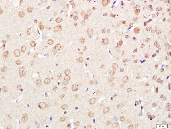 - Paraformaldehyde-fixed, paraffin embedded rat brain tissue; Antigen retrieval by boiling in sodium citrate buffer(pH6) for 15min; Block endogenous peroxidase by 3% hydrogen peroxide for 30 minutes; Blocking buffer (normal goat serum) at 37°C for 20min; Antibody incubation with Rabbit Anti-XPC Polyclonal Antibody, Unconjugated (bs-6634R) at 1:200 overnight at 4°C, followed by a conjugated secondary and DAB staining.