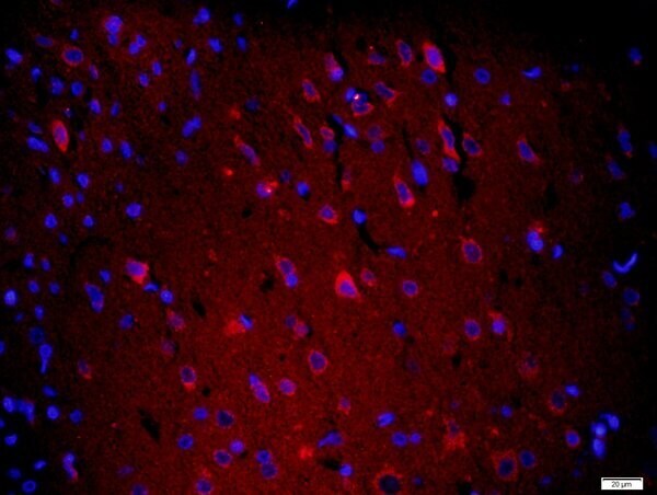 - Paraformaldehyde-fixed, paraffin embedded rat brain tissue; Antigen retrieval by boiling in sodium citrate buffer(pH6) for 15min; Block endogenous peroxidase by 3% hydrogen peroxide for 30 minutes; Blocking buffer (normal goat serum) at 37°C for 20min; Antibody incubation with Rabbit Anti-XPC Polyclonal Antibody, Unconjugated (bs-6634R) at 1:200 overnight at 4°C, followed by a conjugated secondary and DAPI staining.