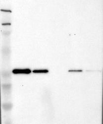 - Western blot analysis of antibody specificity using a routine panel composed of IgG/HSA-depleted human plasma and protein lysates from selected human tissues and cell lines.