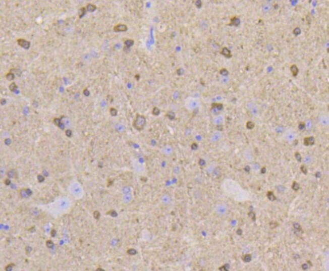 - Immunohistochemistry (Paraffin) analysis of Stathmin-1 in paraffin-embedded mouse brain tissue using Stathmin 1 Recombinant Monoclonal Antibody (Product # MA5-41130). Counter stained with hematoxylin.