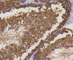 - Immunohistochemistry (Paraffin) analysis of Stathmin-1 in paraffin-embedded mouse testis tissue using Stathmin 1 Recombinant Monoclonal Antibody (Product # MA5-41130). Counter stained with hematoxylin.
