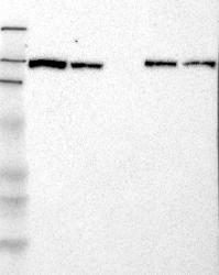 - Western blot analysis of antibody specificity using a routine panel composed of IgG/HSA-depleted human plasma and protein lysates from selected human tissues and cell lines.