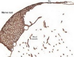 - Immunohistochemistry-paraffin: Laminin Antibody - Staining of rat spinal cord and dorsal root paraformaldehyde/paraffin-embedded tissue using anti-Laminin. Pepsin antigen retrieval was performed on this tissue sample.