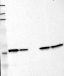 - Western blot analysis of antibody specificity using a routine panel composed of IgG/HSA-depleted human plasma and protein lysates from selected human tissues and cell lines.