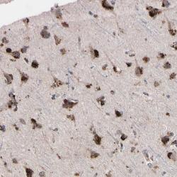 - Immunohistochemical staining of human cerebral cortex shows strong cytoplasmic positivity in neuronal cell.