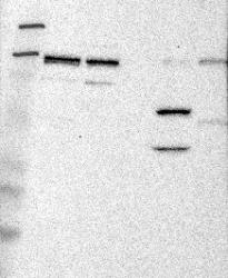 - Western blot analysis of antibody specificity using a routine panel composed of IgG/HSA-depleted human plasma and protein lysates from selected human tissues and cell lines.