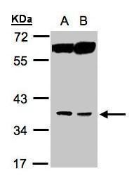 - Sample(30 ug whole cell lysate)A:MOLT4 (GTX27912) B:Raji (GTX27908) 10% SDS PAGEGTX103960 diluted at 1:1000